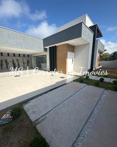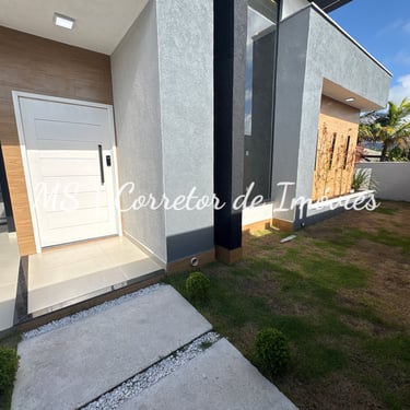 Casa moderna em Itaipuaçu, no Jardim Atlântico, com 3 quartos (1 suíte), espaço gourmet, garagem para 2 carros e fácil acesso à praia e ao comércio.